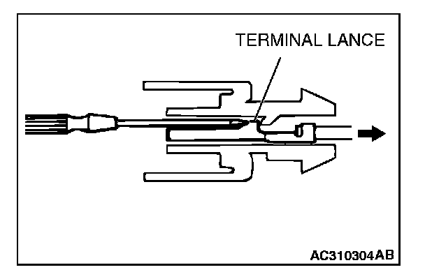 CAUTION: Make sure the lance is pressed in before the terminal is inserted into the connector.