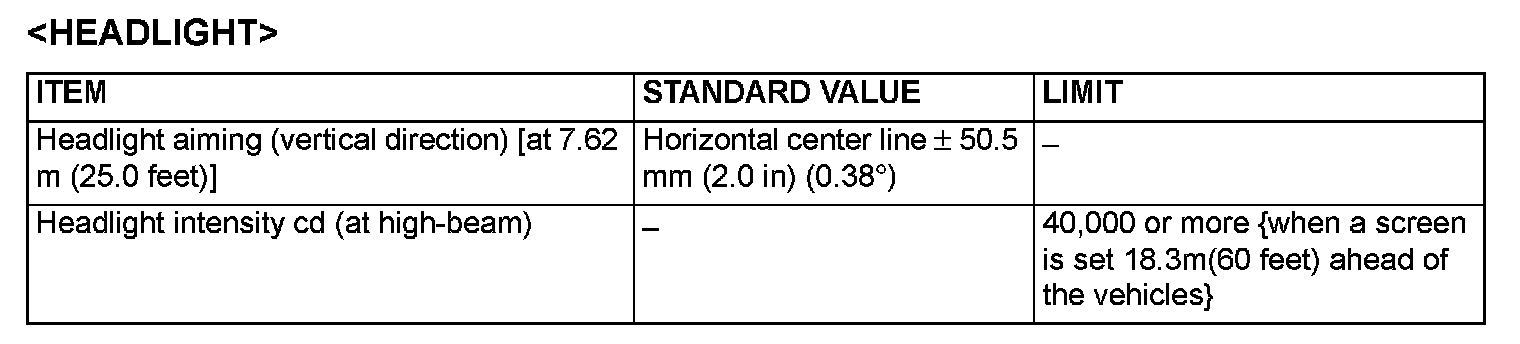 Service Specifications - Headlight: