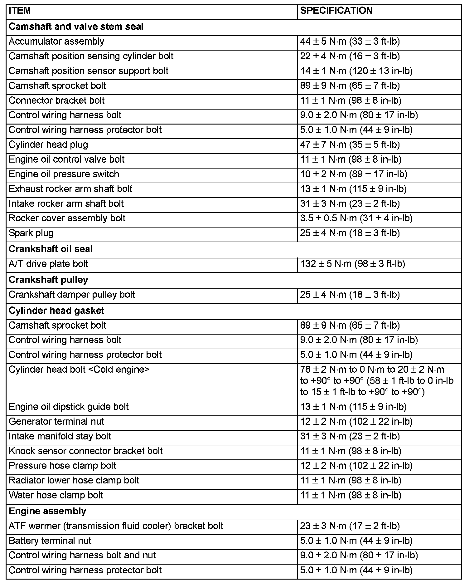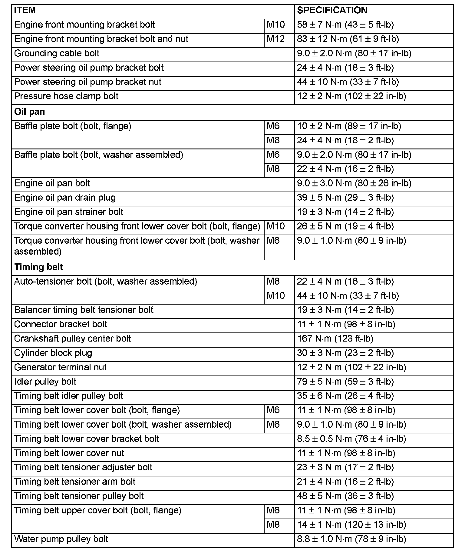 FASTENER TIGHTENING SPECIFICATIONS