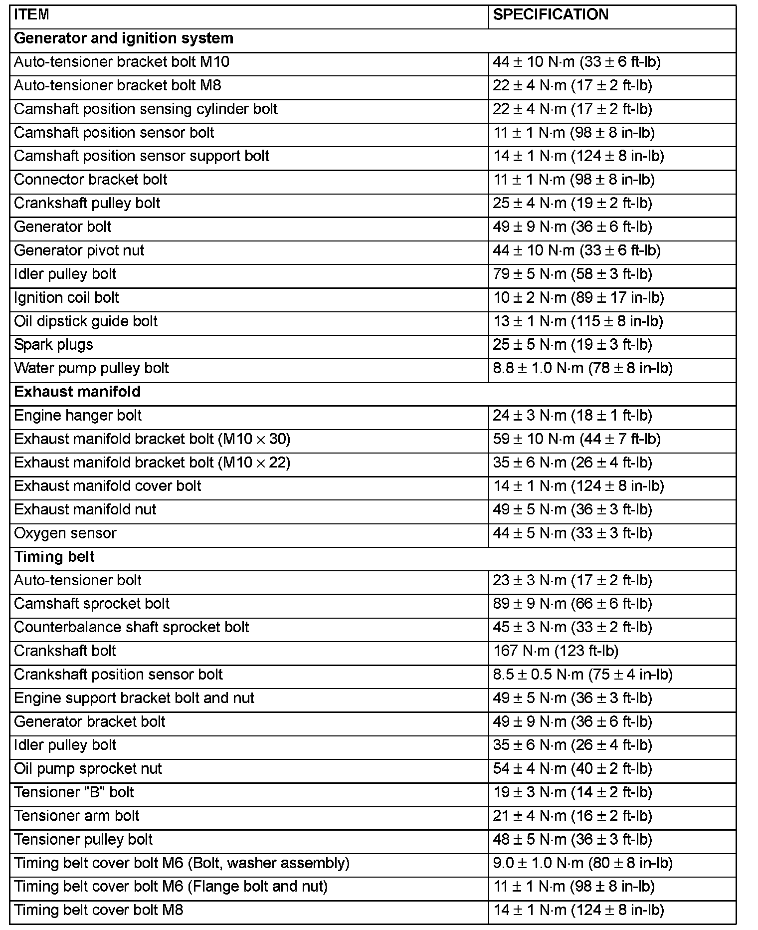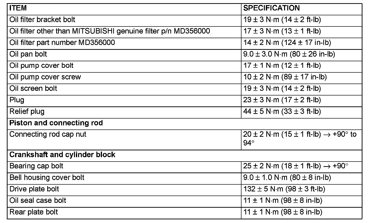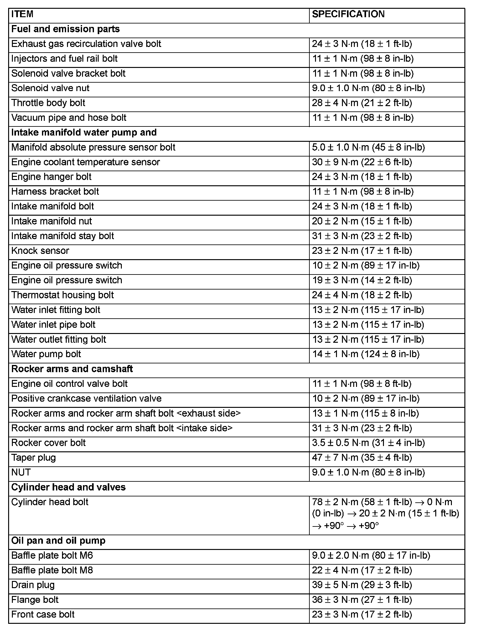 Fastener Tightening Specifications