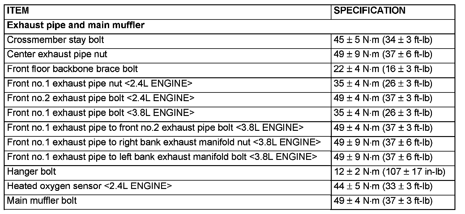 Exhaust Pipe And Main Muffler - Fastener Tightening Specifications: