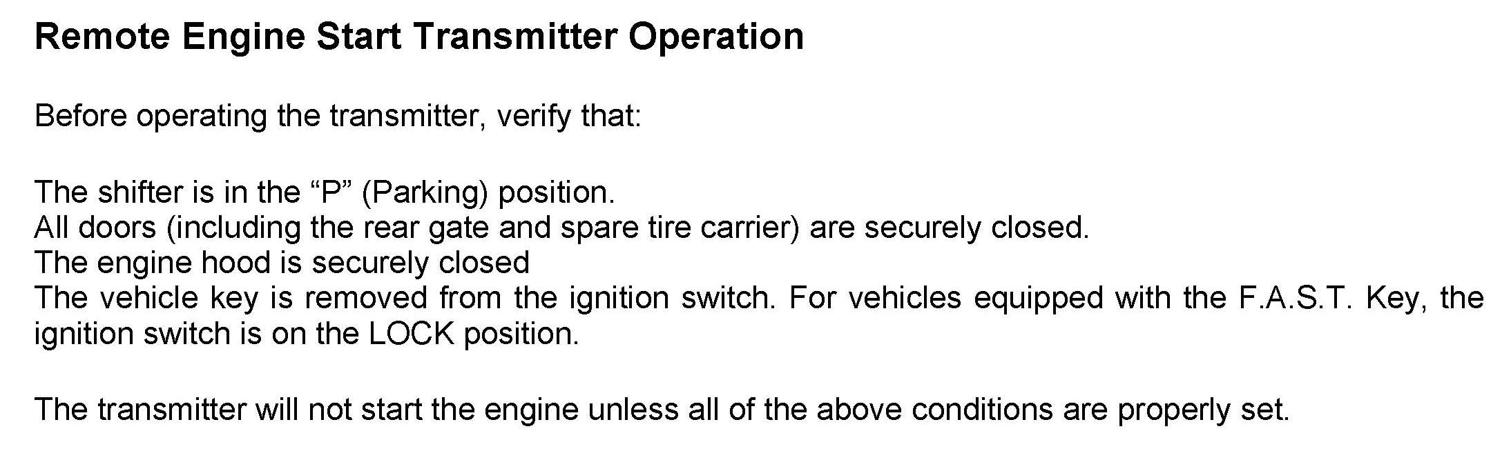 ^ All doors closed including liftgate/trunk. (Door locking/unlocking is not affected by remote start.)