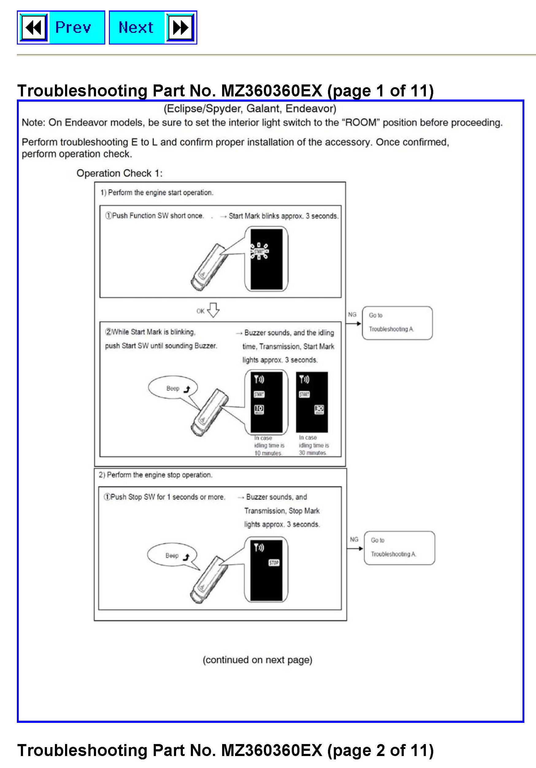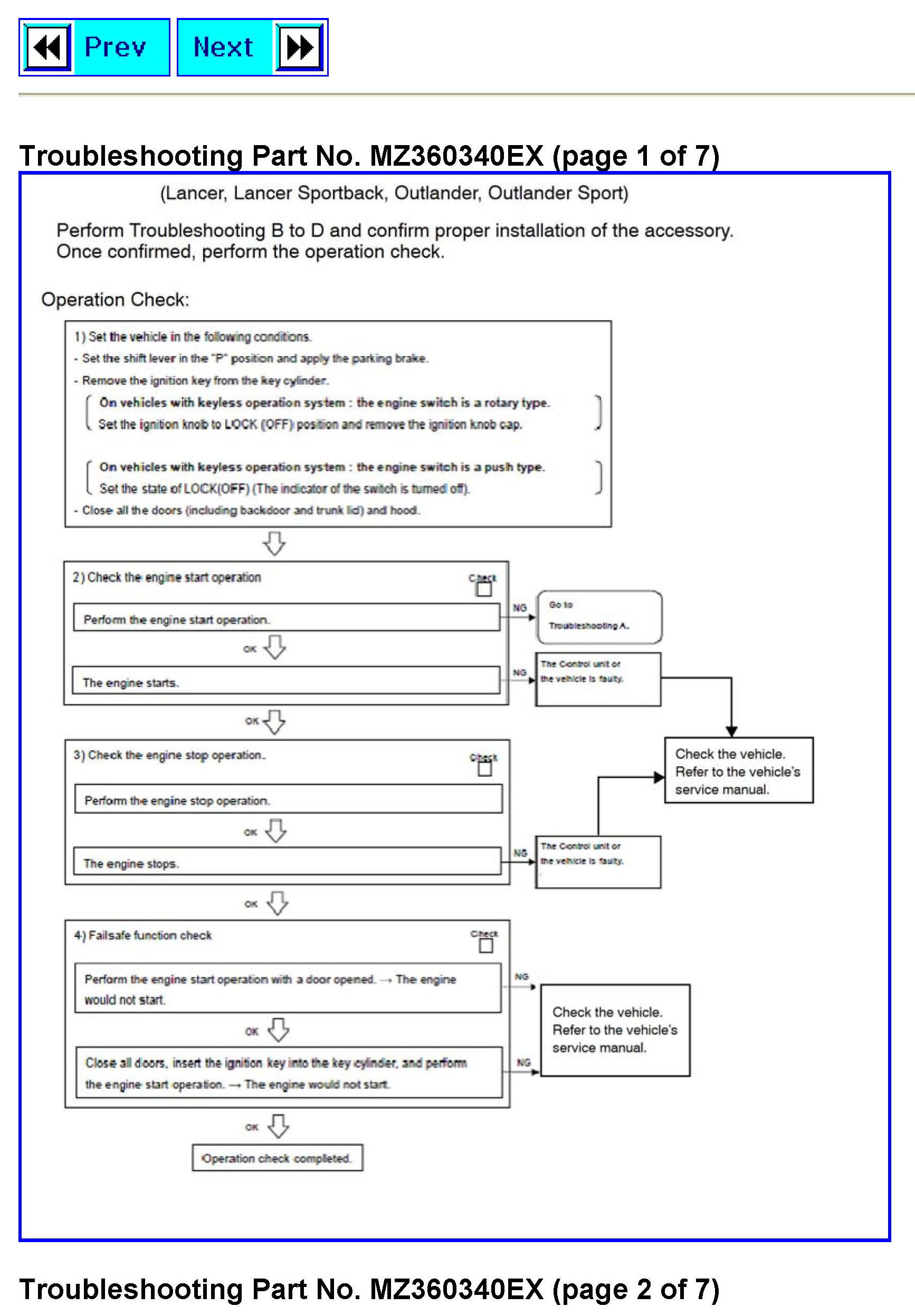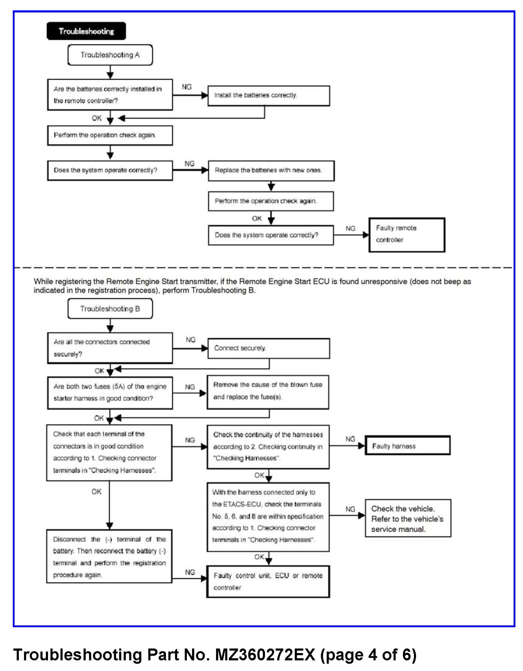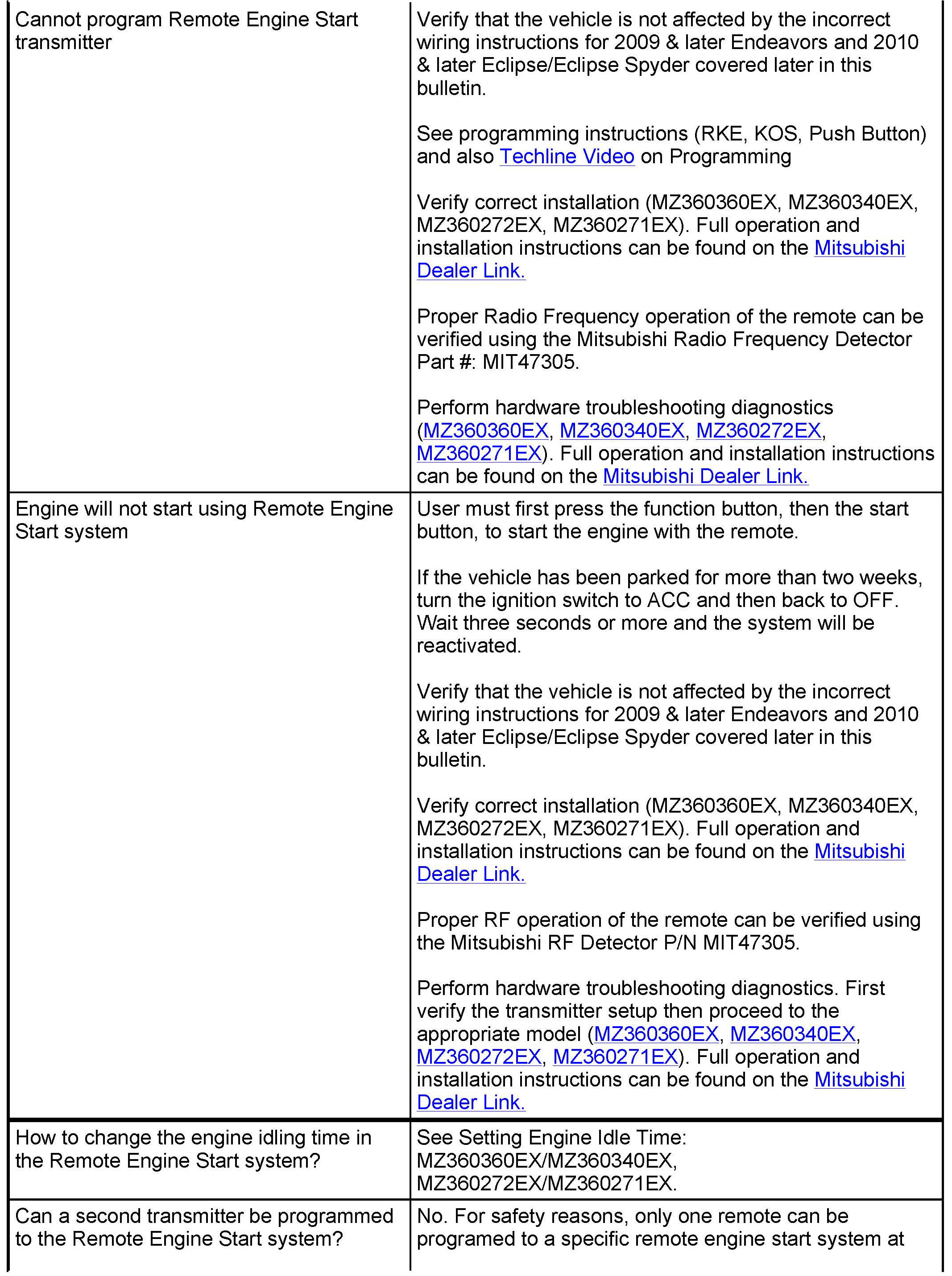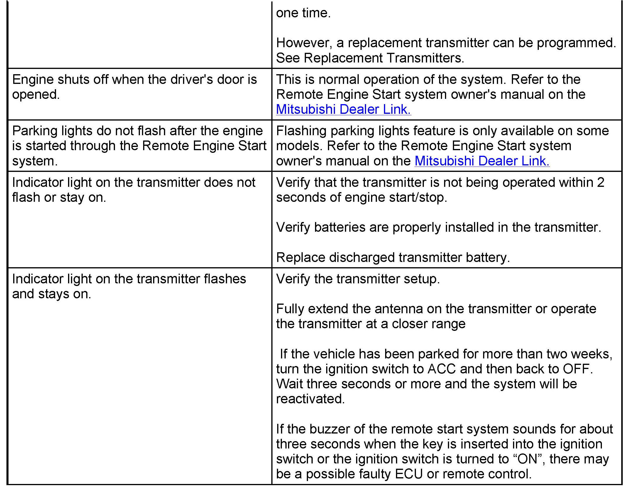 1. Remote Engine Start installation and basic troubleshooting information are on the Mitsubishi Dealer Link: