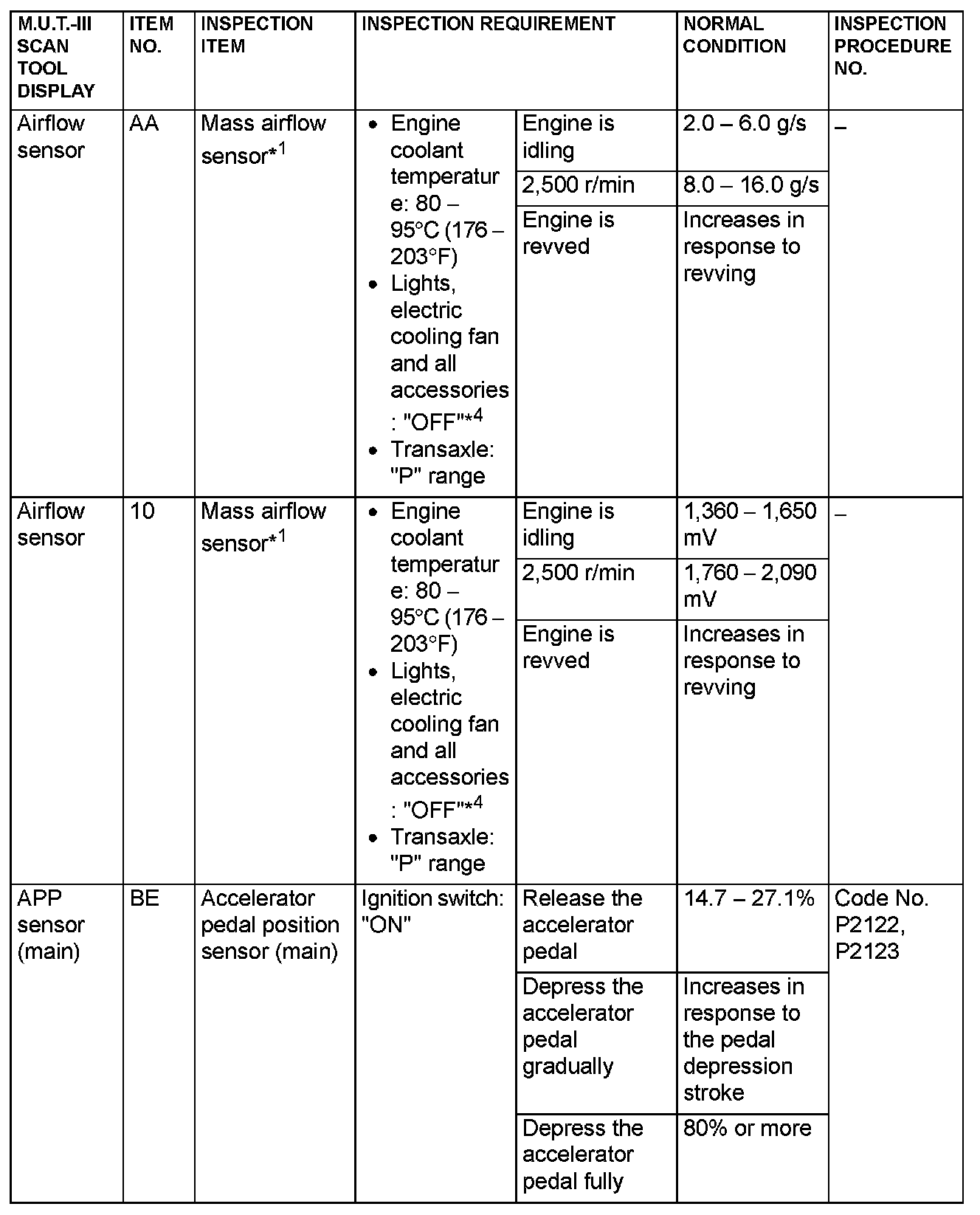 - *1: In a new vehicle [driven approximately 500 km (311 mile) or less], the mass airflow sensor output value is sometimes 10% higher than the standard value.