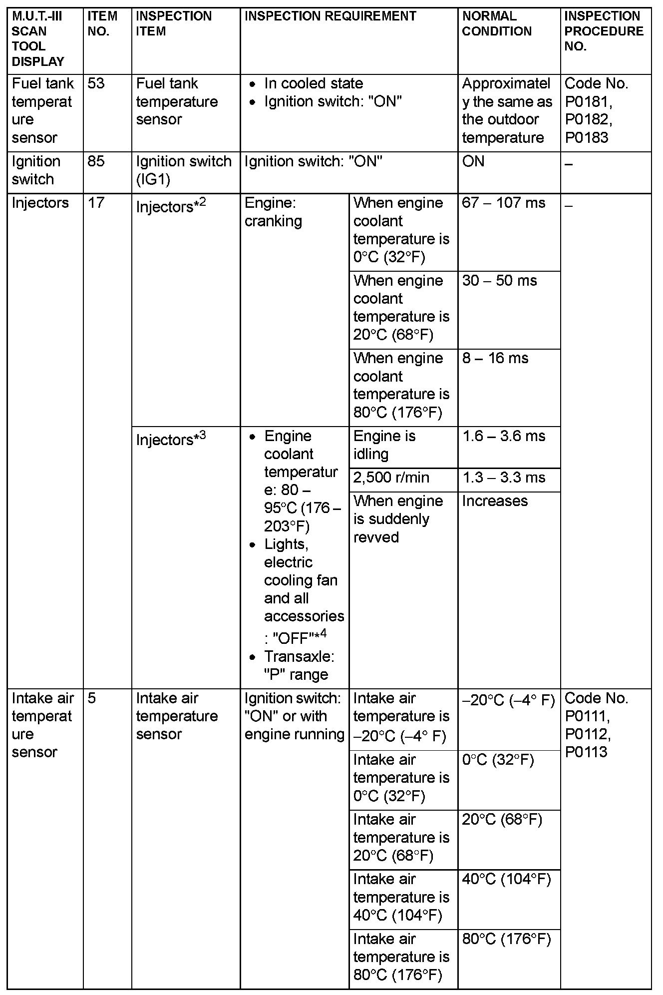 - *3: In a new vehicle [driven approximately 500 km (311 mile) or less], the injector drive time is sometimes 10% longer than the standard time.