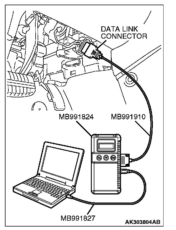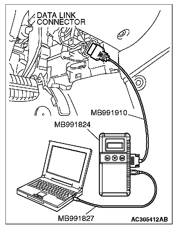 1. Connect scan tool MB991958 to the data link connector.