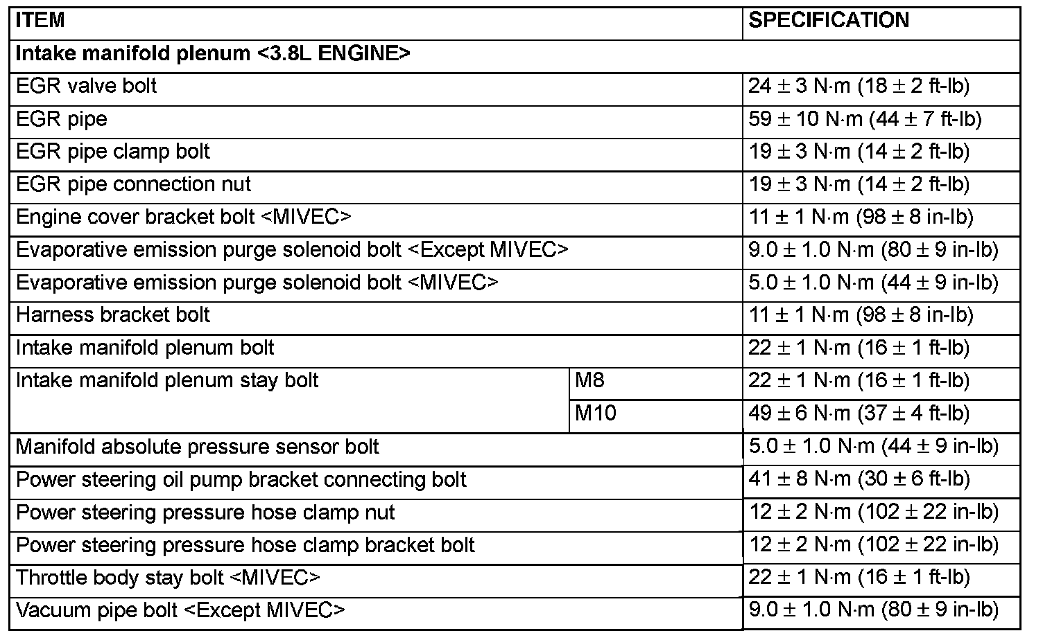 Intake Manifold Plenum - Fastener Tightening Specifications: