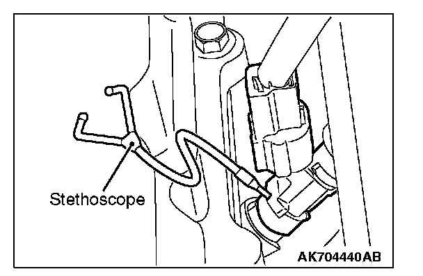 Using a stethoscope or long blade screwdriver, check the operation sound ("tick-tick-tick") of injectors during idling or during cranking. Check that as the engine speed increases, the frequency of the operating sound also increases.