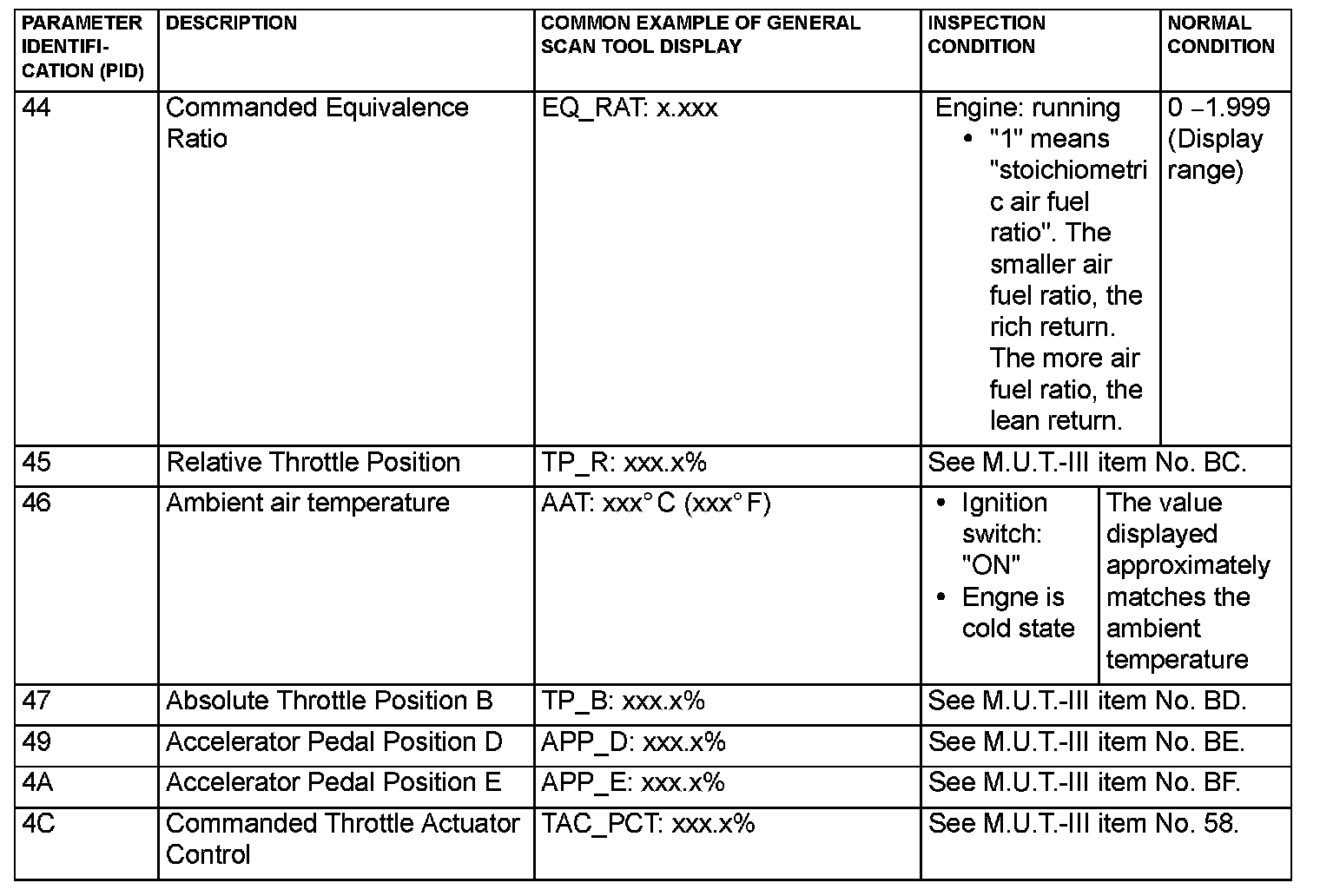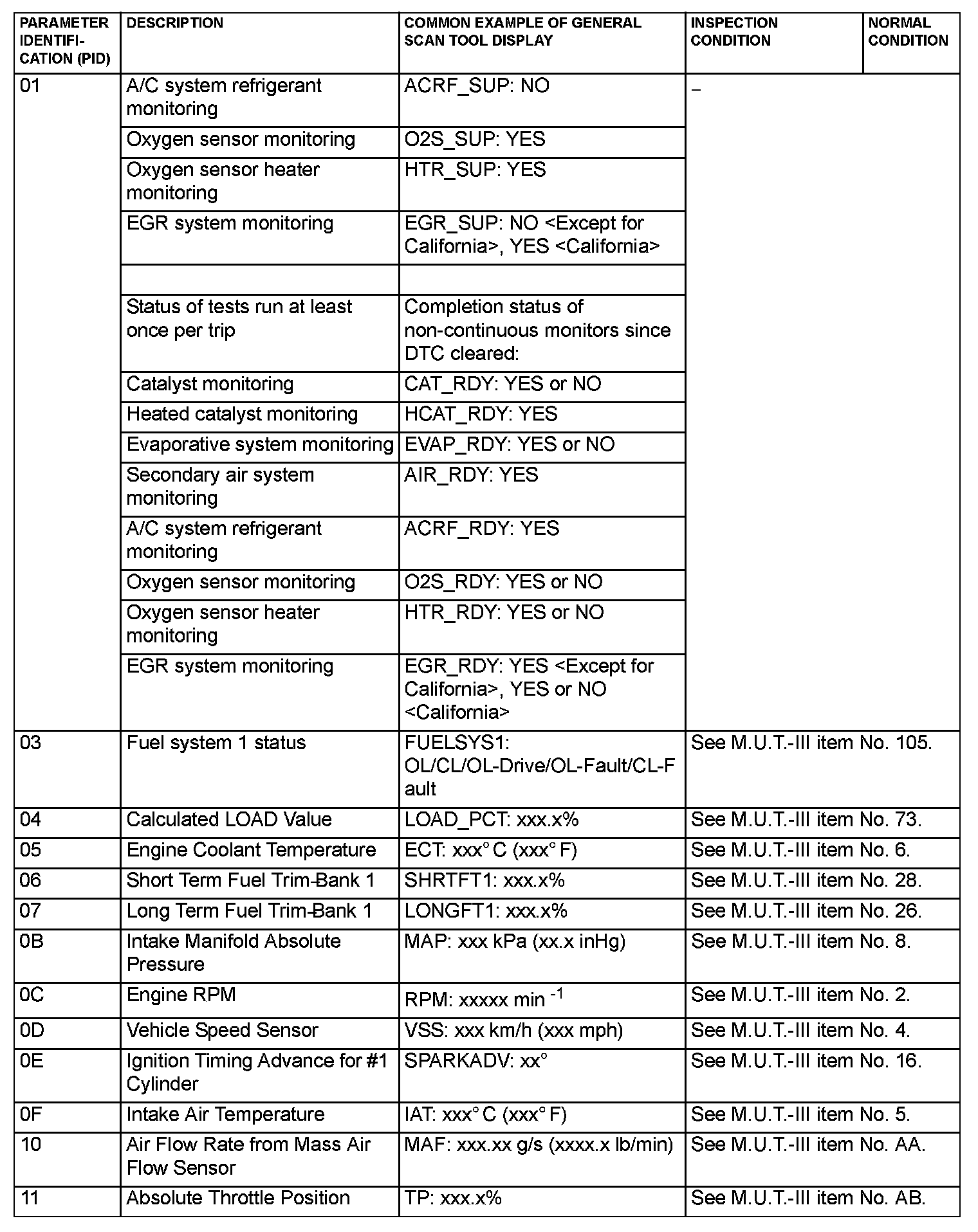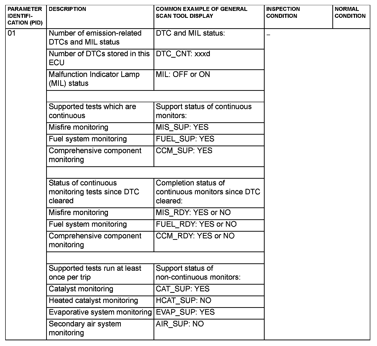 GENERAL SCAN TOOL (GST) MODE 01 REFERENCE TABLE