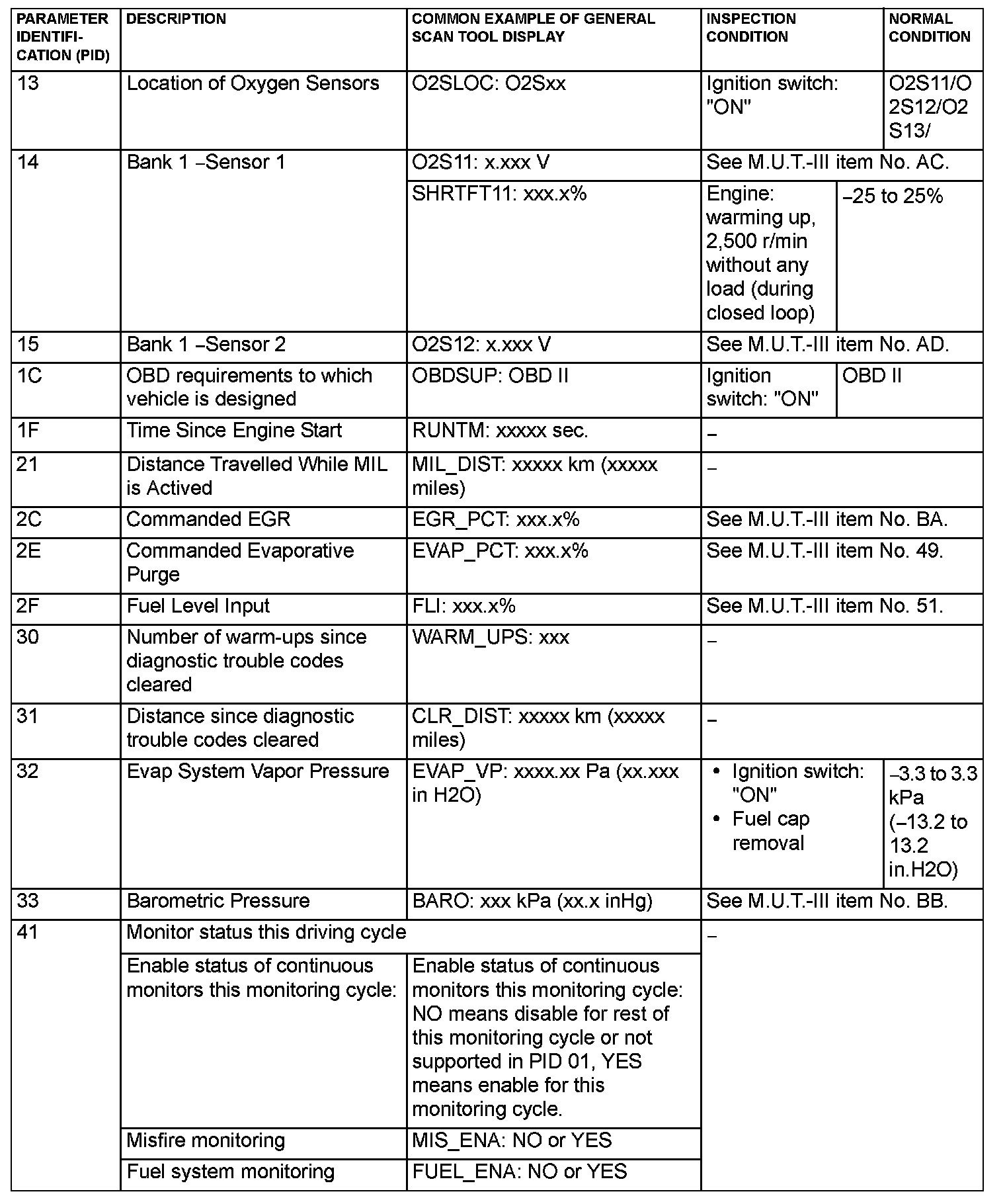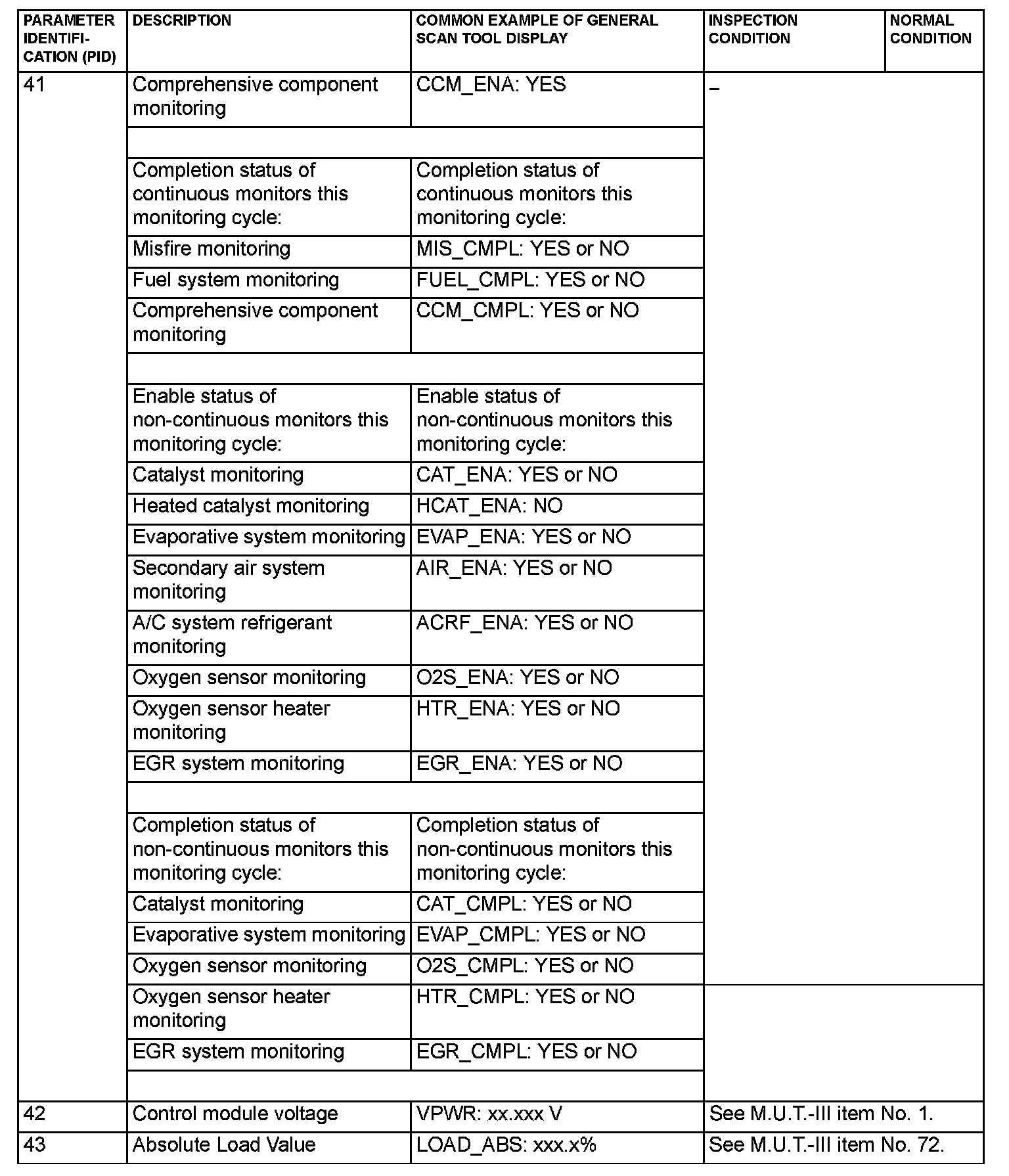 NOTE: GST MODE 01 can be accessed through the use of a general scan tool.
