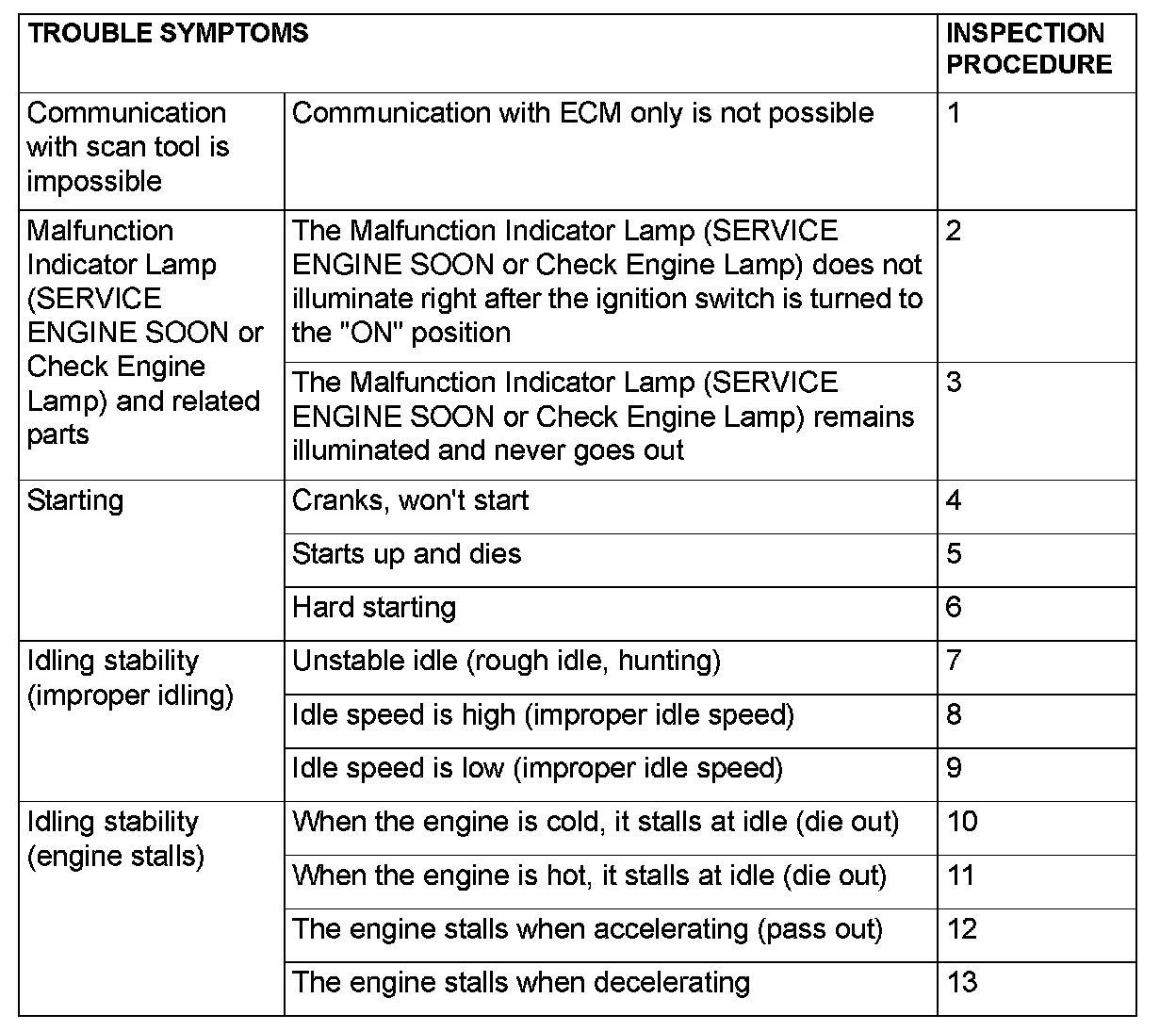 - Check that the ECM ground circuit is normal before checking for the cause of the problem.