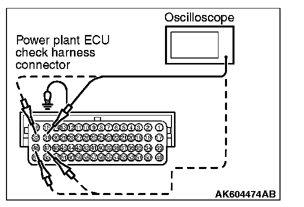 2. Connect the oscilloscope probe to check harness terminal No. 31, No. 32, No. 47 and No. 48.