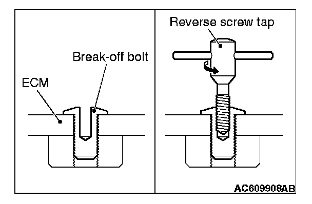 1. Drill in the break-off bolt a hole deep enough for the tap to stand.