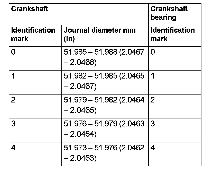 Crankshaft journal oil clearance mm (in) - Limit 0.1 (0.004)