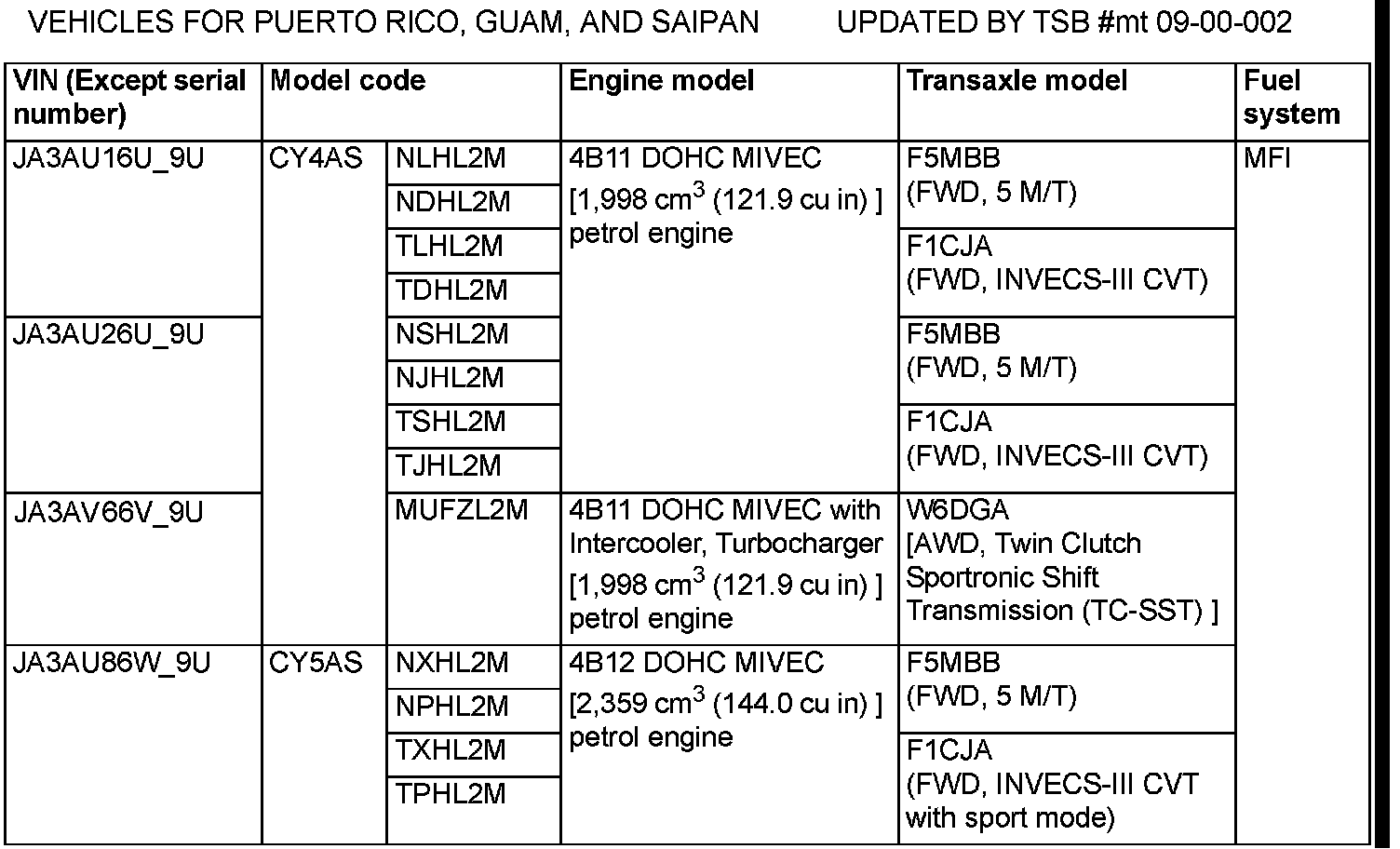 In order to protect against theft, a Vehicle Identification Number (VIN) is attached as a plate or label to the following major parts of the engine and transaxle, as well as main outer panels: