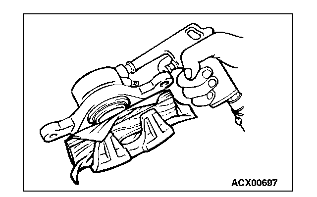 Cover the caliper body outer side with a cloth or similar materials. Blow compressed air through the brake hose installation area to remove the piston and piston boot.