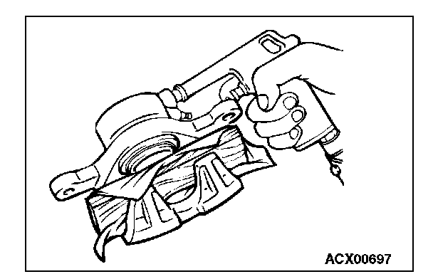 Cover the caliper body outer side with a cloth or similar materials.