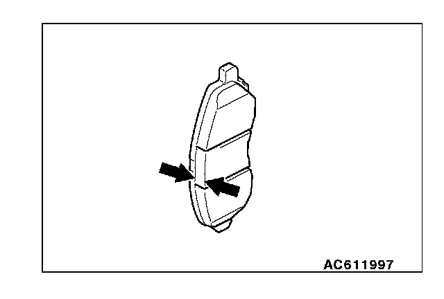 Measure the brake pad thickness at the most worn area. If the brake pad thickness is less than the limit value, replace the brake pad.