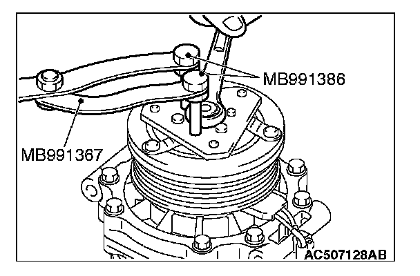 Check that O-ring is installed to the high-pressure relief and use the adjust torque wrench to install the high-pressure relief valve to the main body of the compressor.