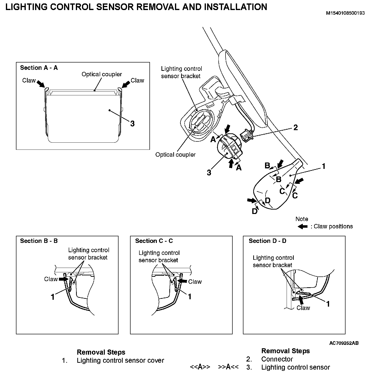 LIGHTING CONTROL SENSOR REMOVAL AND INSTALLATIONRemoval Steps 1-3: