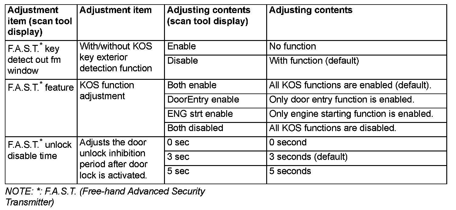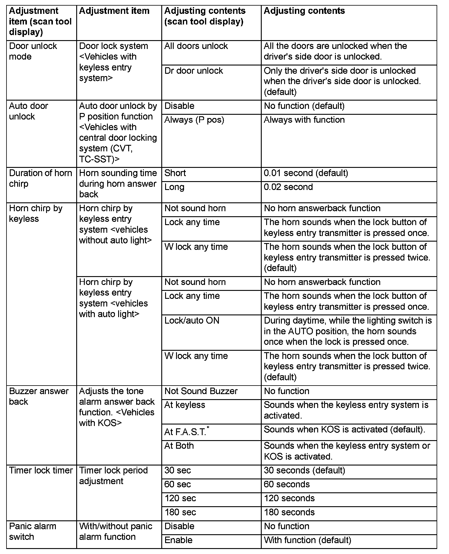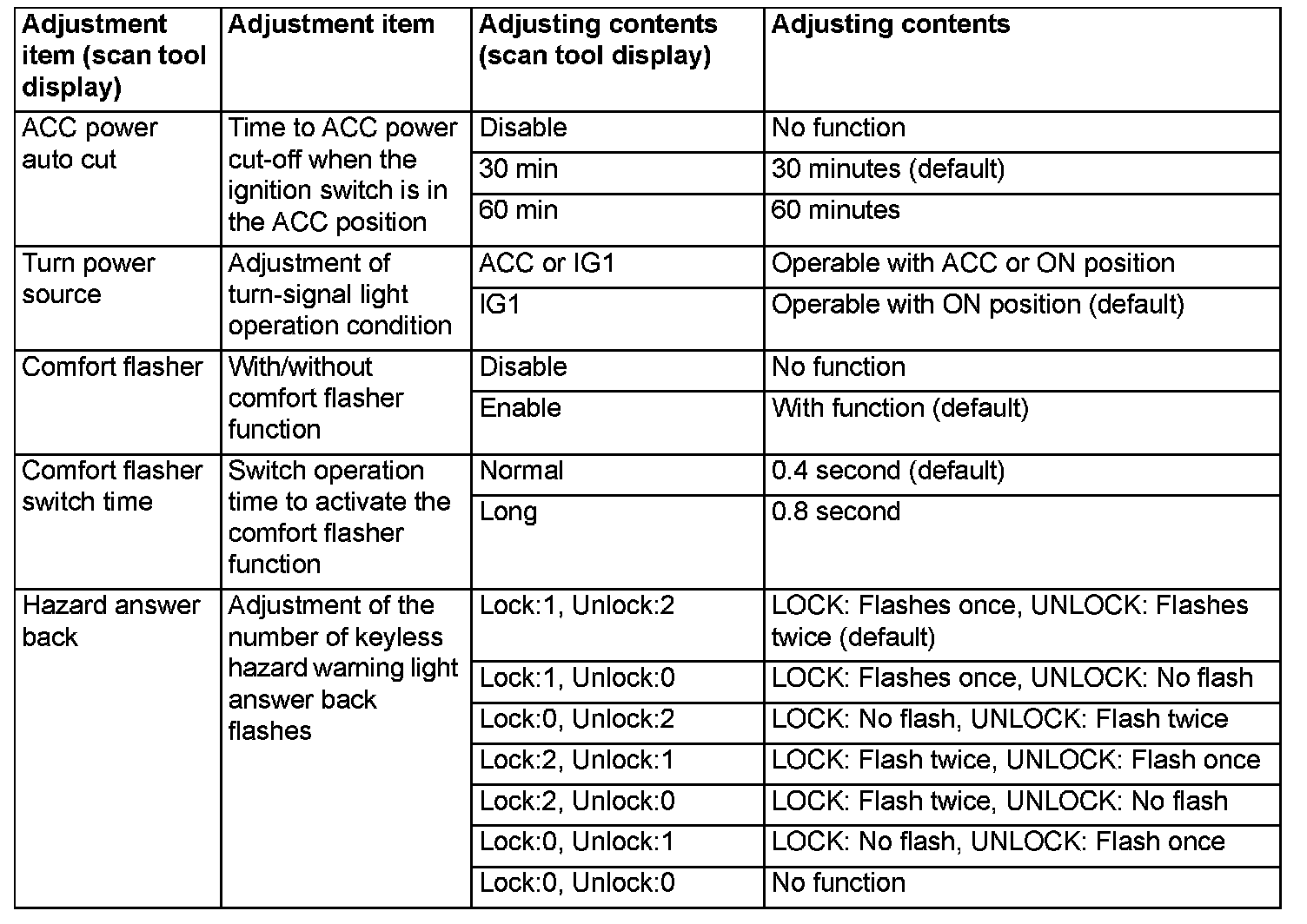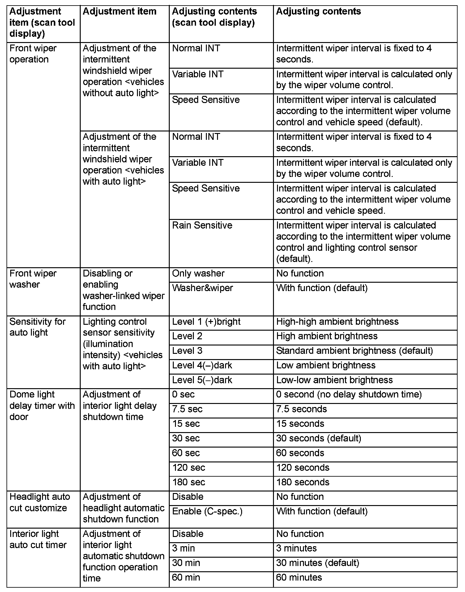 By operating the ETACS system or MMCS of scan tool MB991958, the following functions can be programmed. The programmed information is held even when the battery is disconnected.