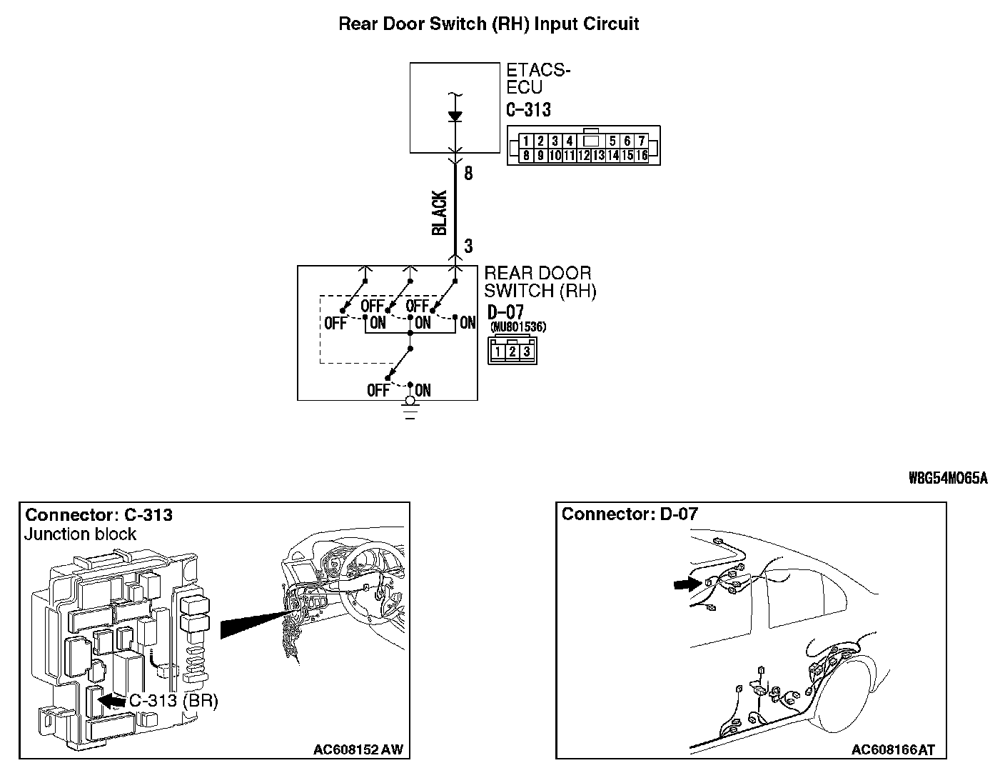 Inspection Procedure 8: ETACS-ECU does not receive any signal from the rear door switch (RH).