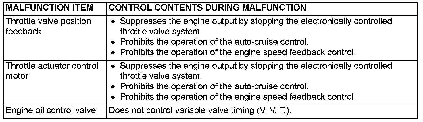 When the main sensor malfunctions are detected by the diagnostic test mode, the vehicle is controlled by means of the following defaults.