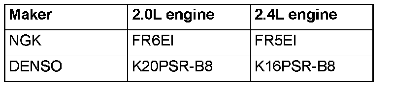 Iridium plugs are used. Use care not to damage the iridium tips of the plugs. Do not adjust the spark plug gap.