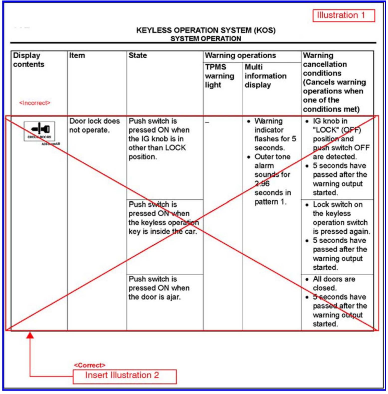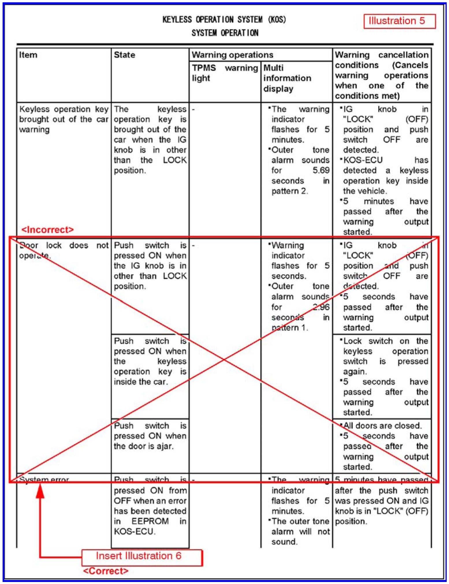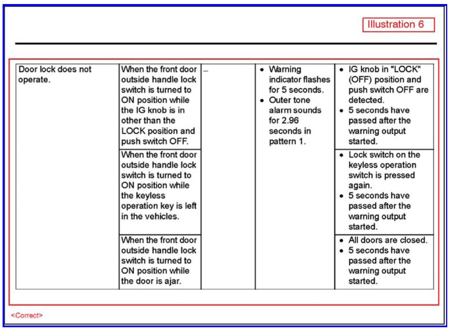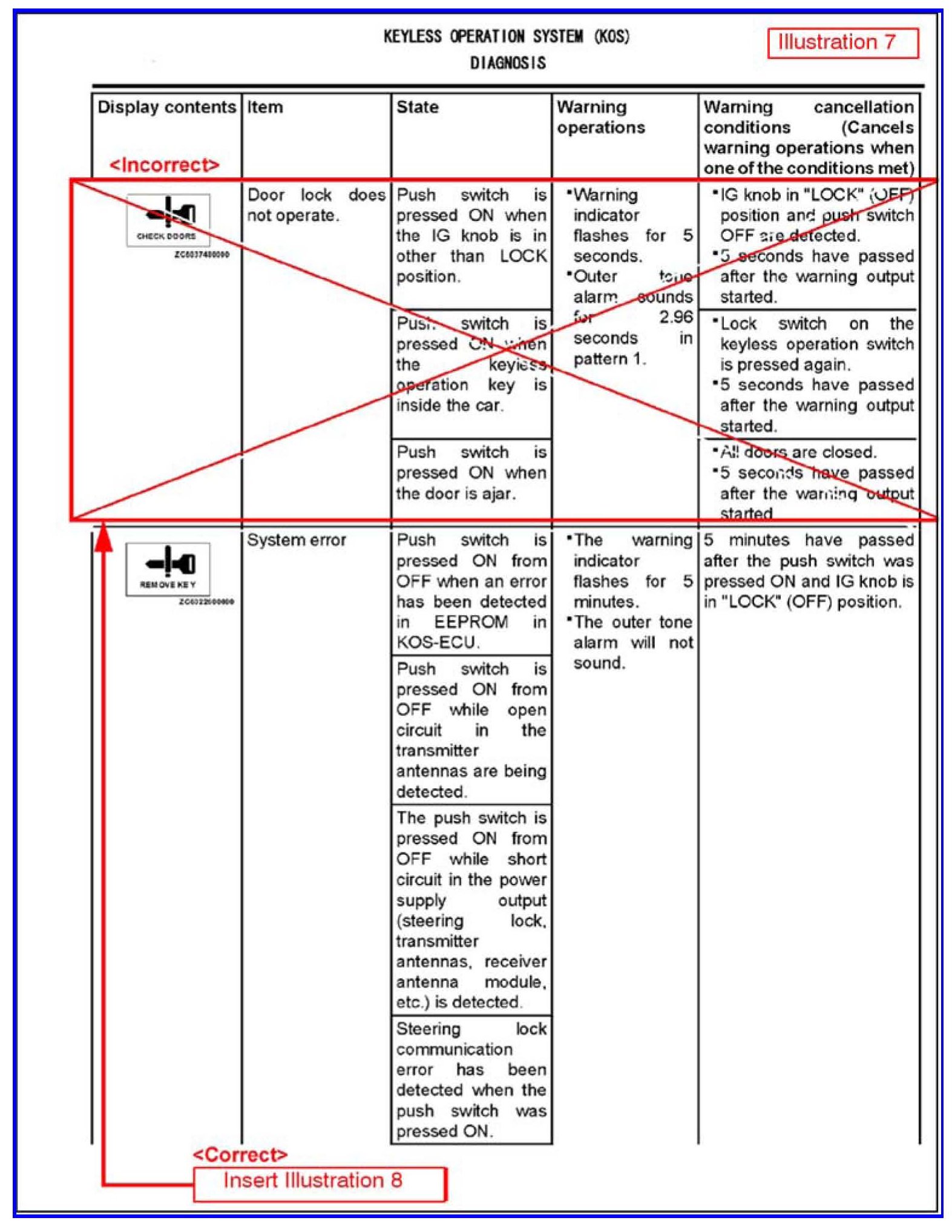 ^ The sentences explaining the warning state are corrected from; "push switch", to; "front door outside handle lock switch."