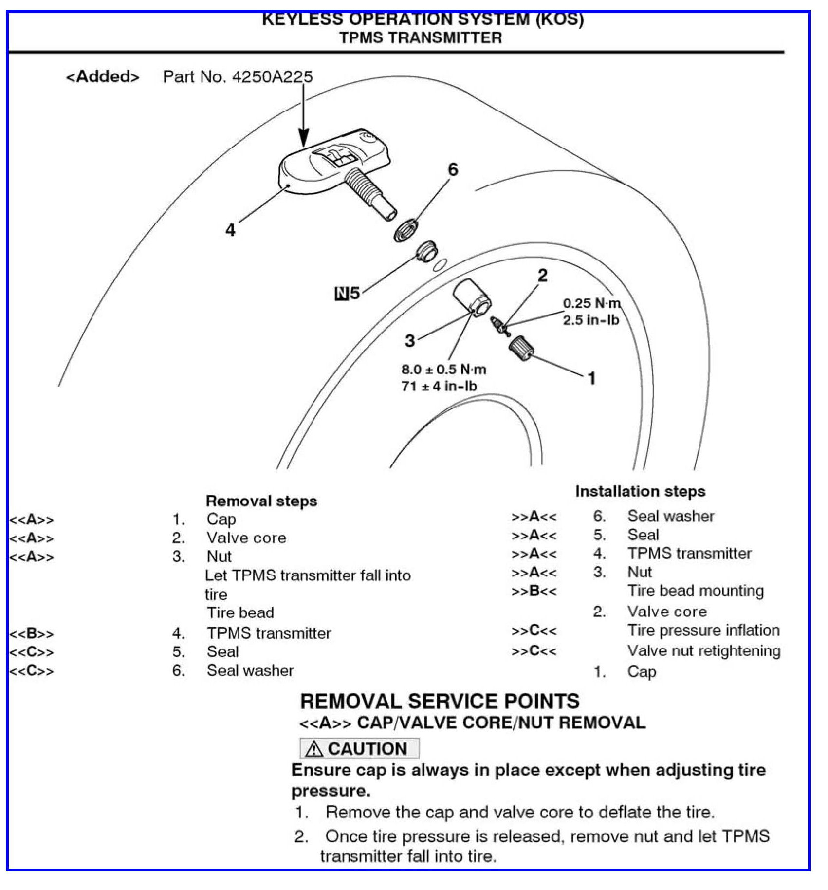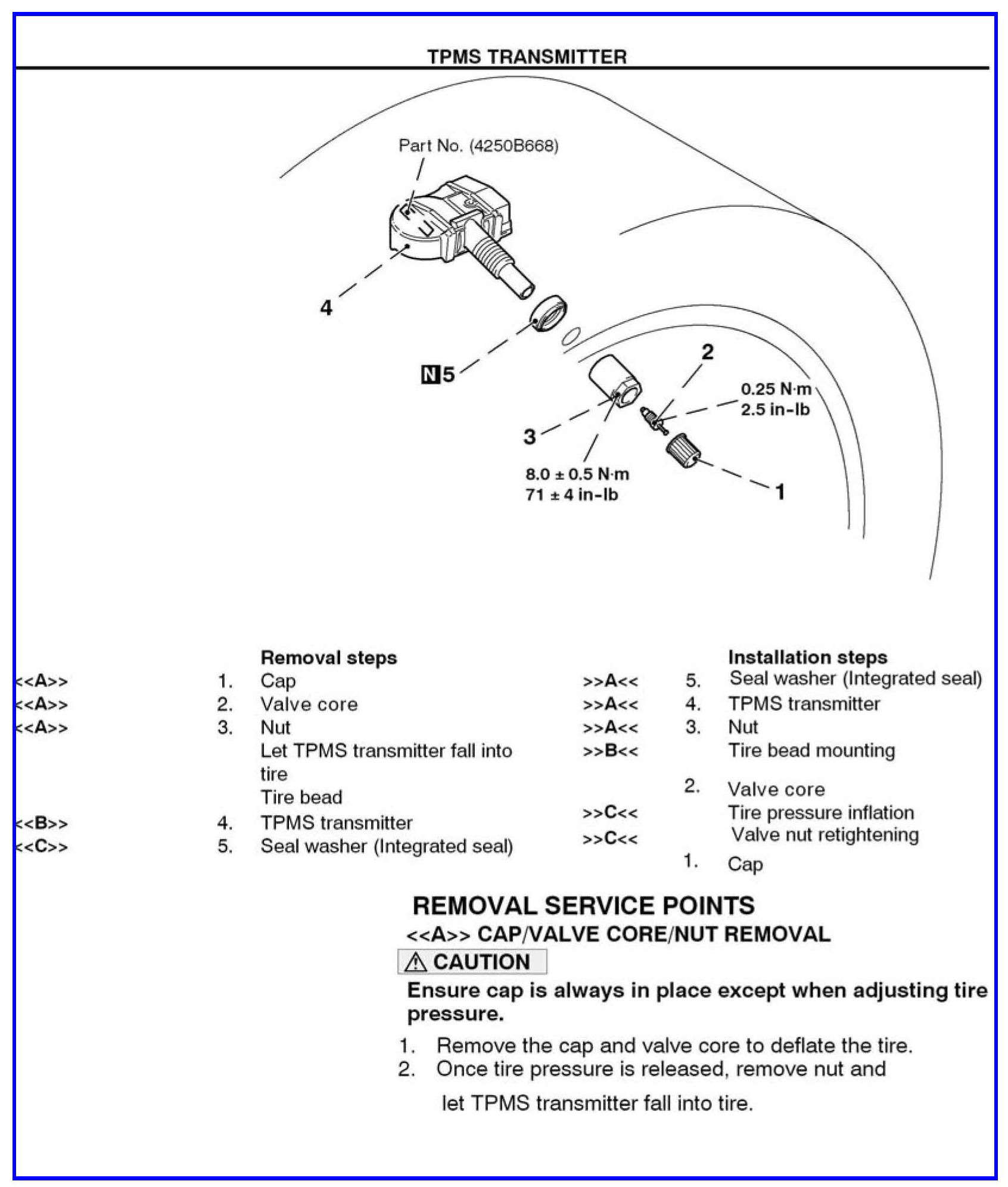 TPMS TRANSMITTER REMOVAL AND INSTALLATION - SERVICE MANUAL REVISION