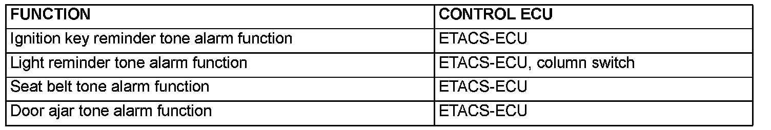 The tone alarm functions are as follows. These functions are controlled by relevant ECUs.