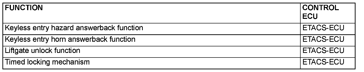 After unlocking the doors with the keyless entry transmitter, if no doors are opened, if the ignition key is not inserted or if the locking function is not operated, the ETACS-ECU automatically locks the doors in 30 seconds.