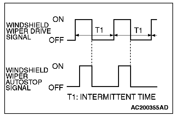 NOTE: If the intermittent time T1 is within 2 seconds, the wiper is operated consecutively at LOW-speed by the front-ECU.