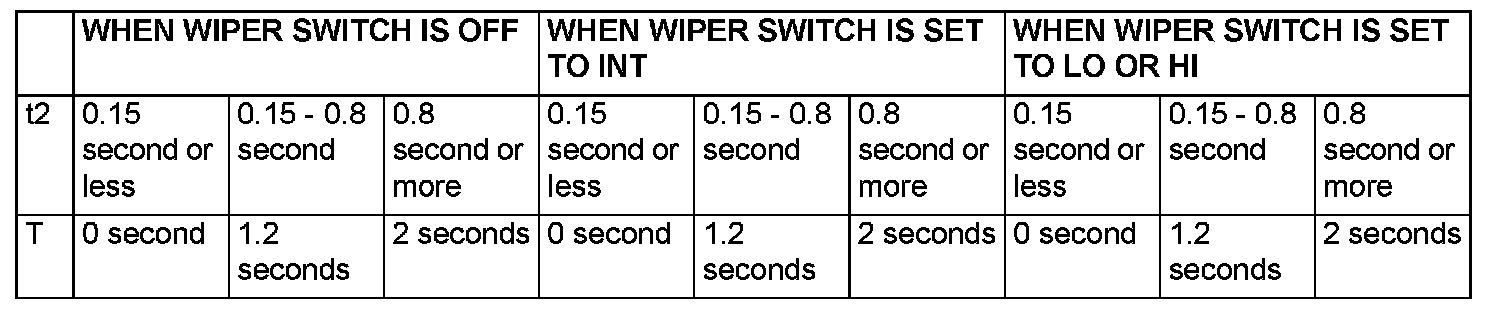 NOTE: The wiper drive signal output time varies according to the conditions. Refer to the following table for details.