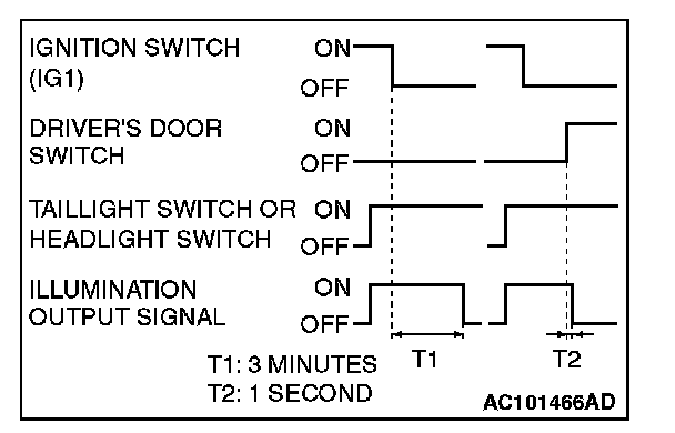 When the ignition key is turned from "ON" to "LOCK" (OFF) or "ACC" position with the lighting switch turned ON, and this state continues for three minutes, the light will automatically be turned off. If the driver's door is opened during these three minutes, the light will go off one second later.