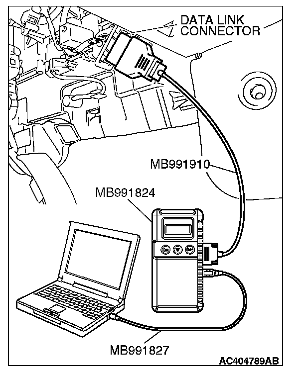 1. Connect scan tool MB991958 to the data link connector.