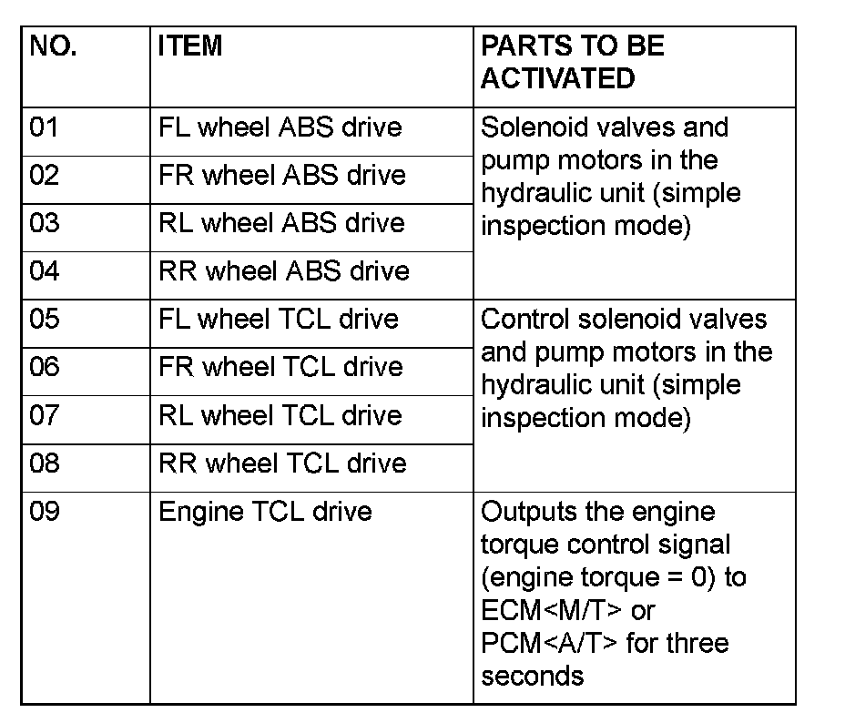 NOTE: If the TCL/ASC-ECU runs down, actuator testing cannot be carried out.