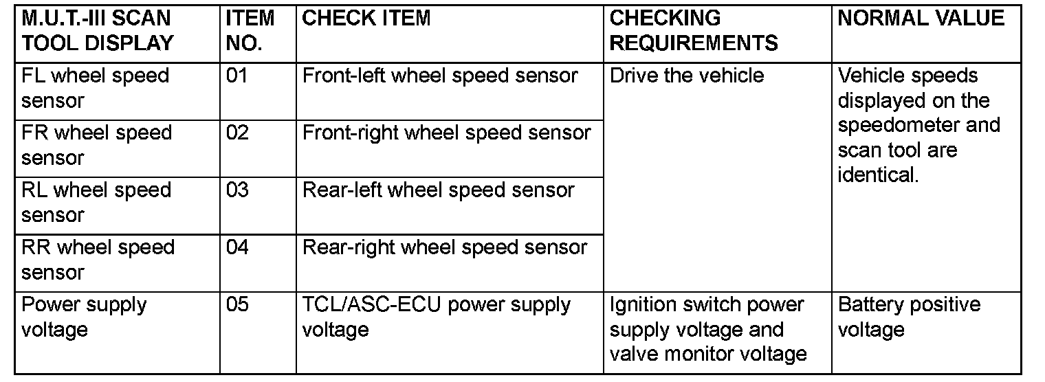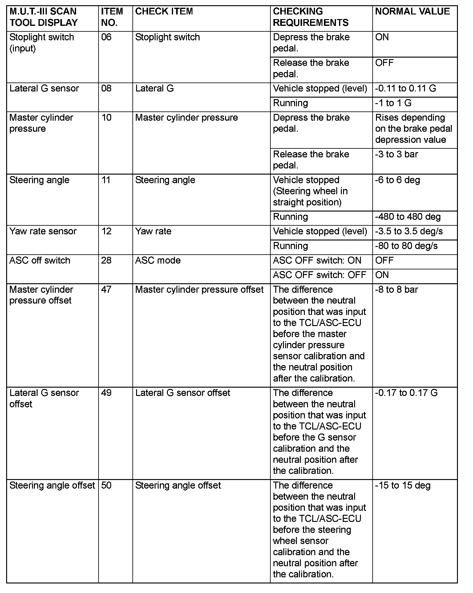 The following items can be read by the scan tool from the TCL/ASC-ECU input data.