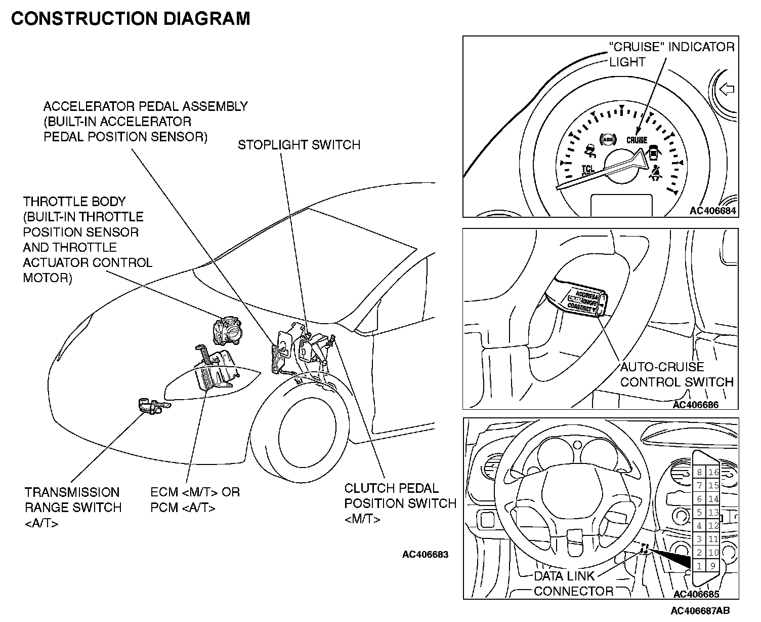 By using the auto-cruise control system, the driver can select and maintain a desired cruising speed [between 40 km/h (25 mph) and 200 km/h (124 mph)] without depressing the accelerator pedal.