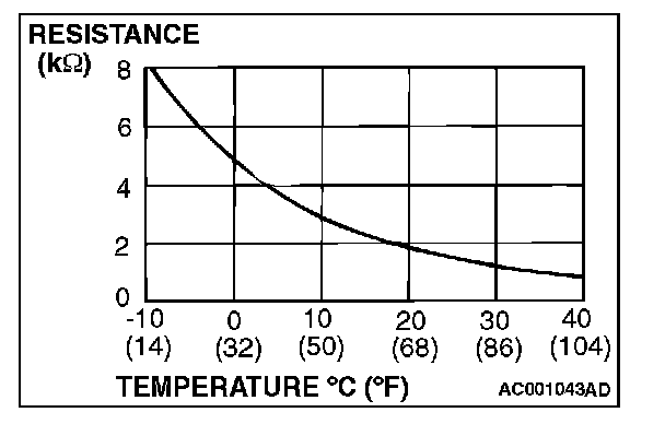 Measure the resistance between connector terminals 1 and 2. under at least two different temperatures. The resistance values should generally match those in the graph.