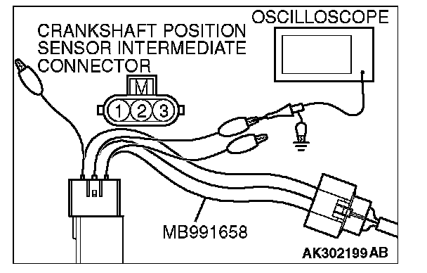 3. Disconnect the crankshaft position sensor intermediate connector and connect the test harness special tool (MB991658) between the separated connector.