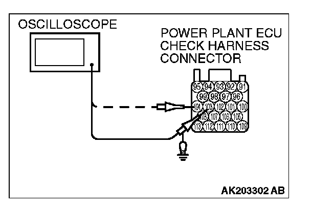 3. Connect the oscilloscope to check harness terminal No. 103. (Check the crankshaft position sensor signal wave pattern.)