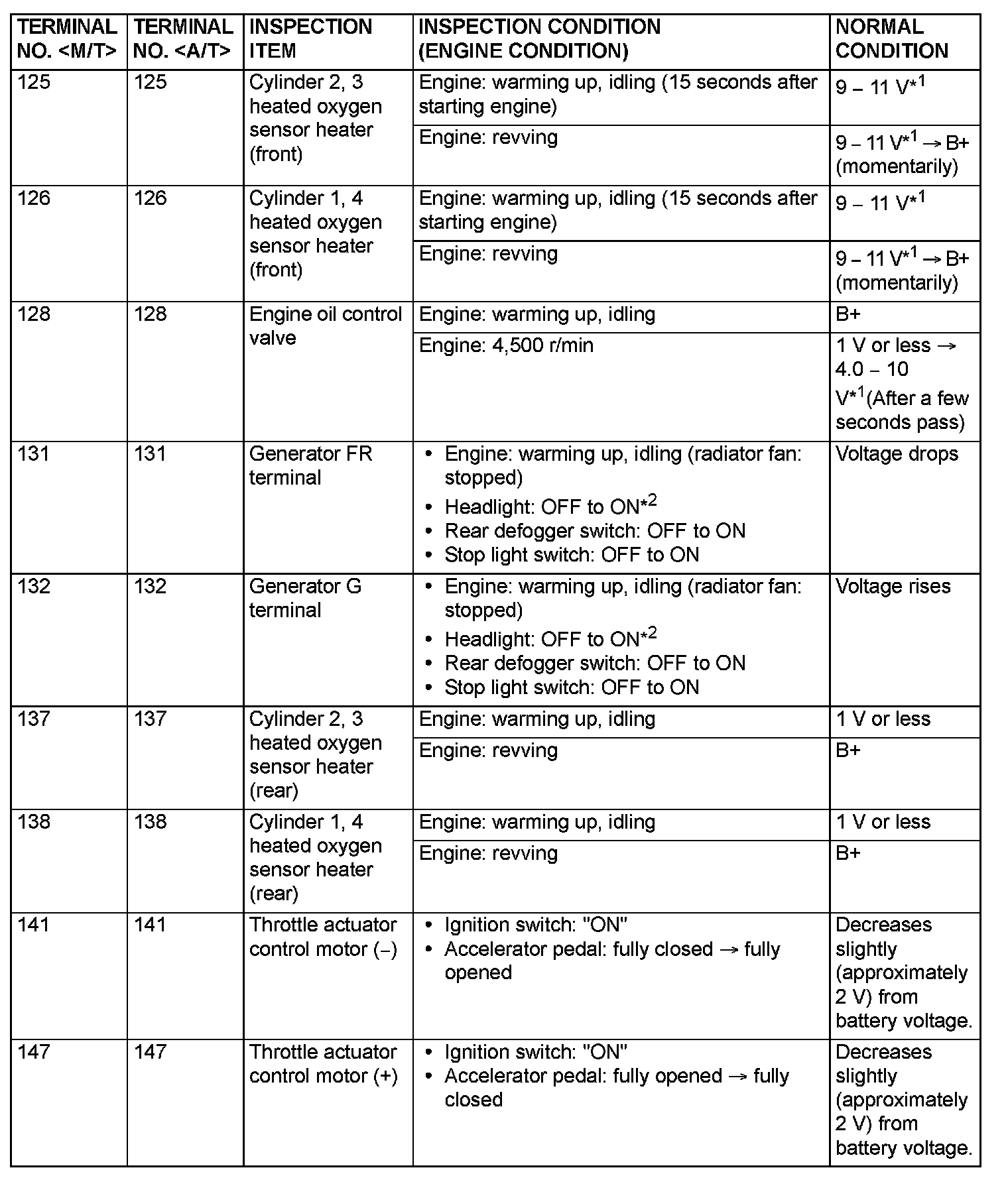 *2: Vehicles for Canada, the headlight, taillight, etc. remain lit even when the lighting switch is in "OFF" position but this is no problem for checks.