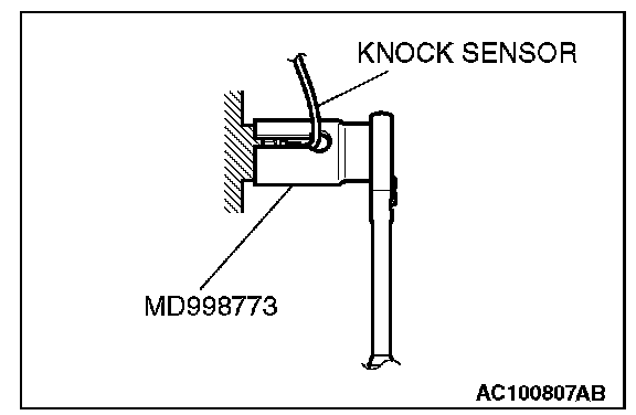 Use special tool MD998773 to tighten the knock sensor to the specified torque in the same manner as removal.