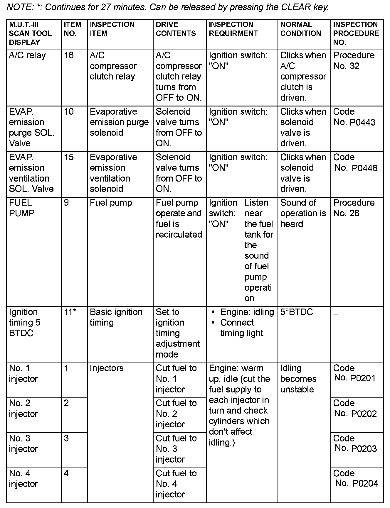Actuator Test Reference Table (Part 1):