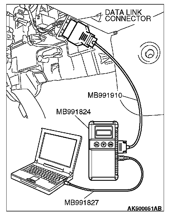 1. Connect scan tool MB991958 to the data link connector.