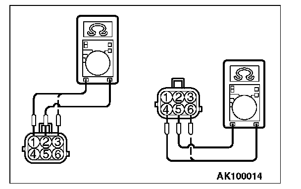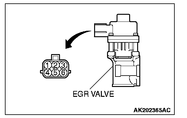 4. Measure the resistance between terminal No. 5 and either terminal No. 6 or terminal No. 4 of the connector at the EGR valve.