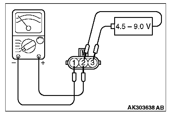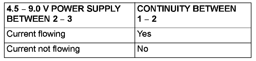 1. Connect and disconnect 4.5 - 9.0 V battery between terminal No. 2 and No. 3, and observe the ohmmeter whether there is continuity or not.