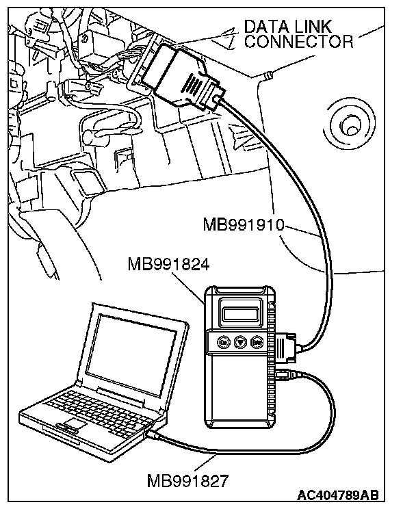 1) Connect scan tool MB991958 to the data link connector.
