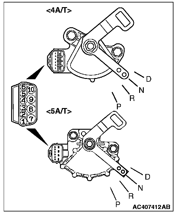 Move the selector lever to each position. The manual control lever position of the transmission range switch should match the transmission range.